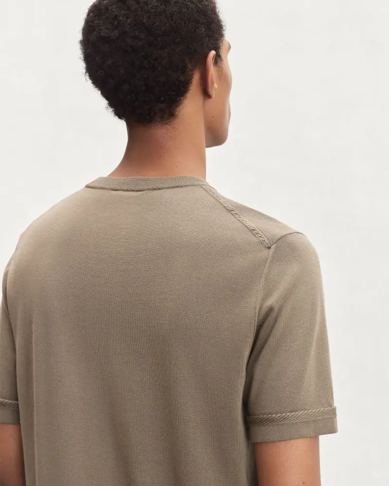 Made from a subtle cotton and silk knit, this elegant T-shirt is an interesting alternative to the traditional shirt. This refined piece has a delicate “B Thabor” signature.